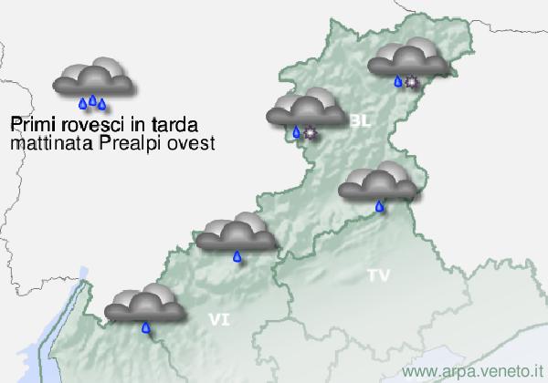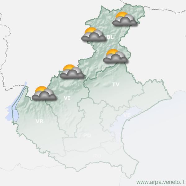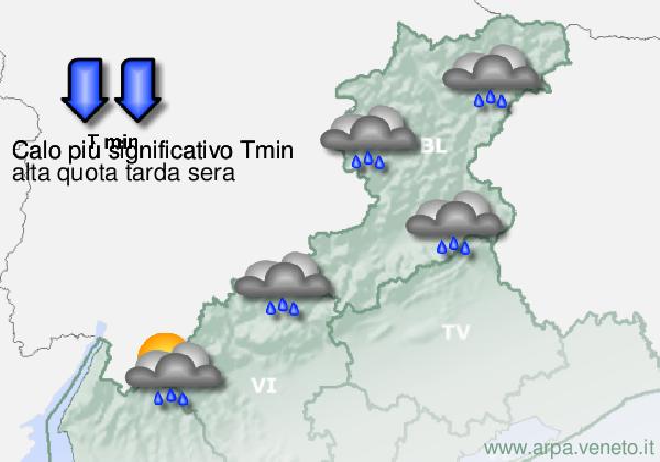 Broken or overcast - Precipitations: Rainfalls also like showers/thunderstorms - Chance of: 70% - Snow limit: Above 2000-2300 m