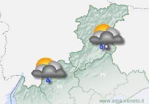 Cloudy/broken with clearings - Precipitations: Light scattered - Chance of: 50%