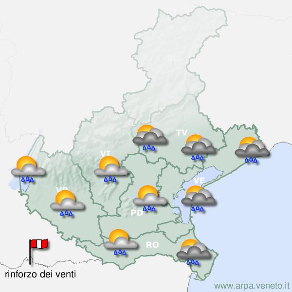 Nébulosité en diminution - Précipitations: Pluies modérées - Probabilité: 80%