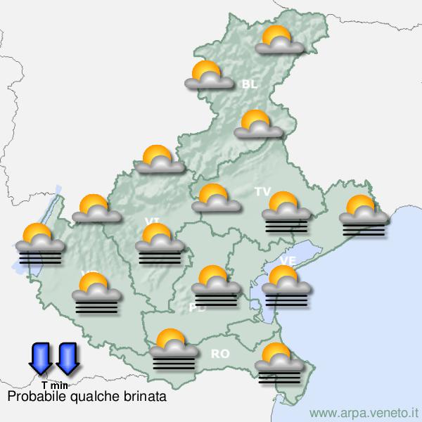 Nébulosité irrégulière et éclaircies - Précipitations: Generalement absentes - Probabilité: 10%