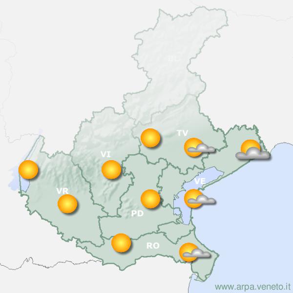 Non si verificheranno precipitazioni. Cielo sereno o poco nuvoloso. Temperature: in calo, eccetto locali aumenti pomeridiani, con differenze anche sensibili rispetto a sabato; in prevalenza sotto la media e di pomeriggio localmente sopra la media, anche di molto. Venti deboli/moderati con direzione variabile.