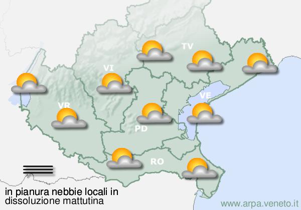lunedì 12. Alternanza di nuvole e rasserenamenti. Di notte nebbie locali, in dissolvimento di mattina.