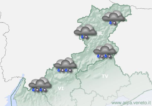 Precipitazioni. Su Prealpi nel pomeriggio e alla sera non esclusi isolati piovaschi o rovesci (10-20%), con eventuale quota neve oltre i 1500-1600 m.