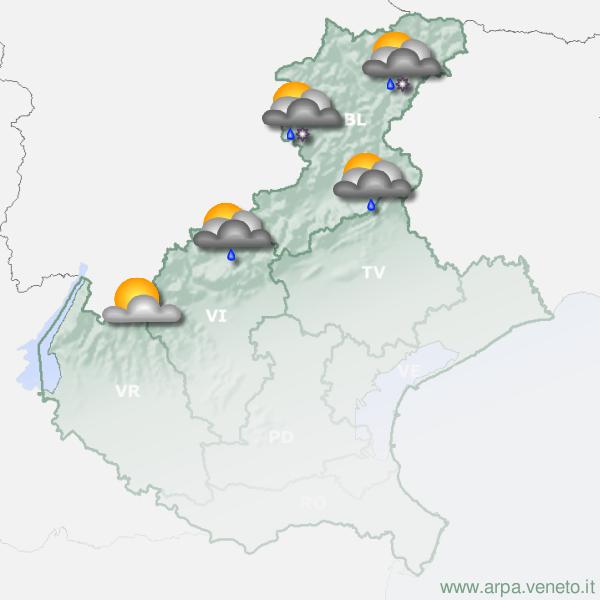 Partiellement nuageux pour nuages basses - Précipitations: éparses aussi avec averses - Probabilité: 30% - Altitude neige: Au-dessus de 1300-1500 m