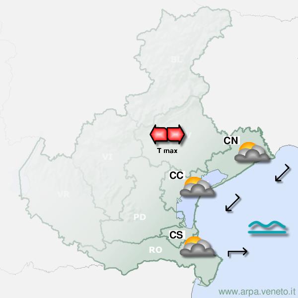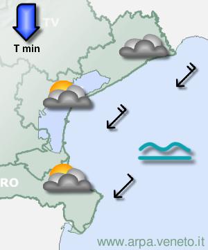 Litorale nord. Nuvolosità in diminuzione - Precipitazioni: Assenti - Probabilita: 0% - Venti: Deboli da nordest